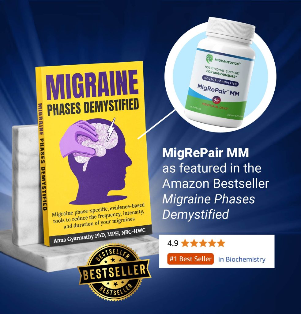 Migraine supplement created by a female doctor based on decades of migraine-focused biomedical research and real clinical trials. MigRePair MM helps regulate prostaglandins, balance hormones, and support vascular tone, addressing key biological factors behind menstrual migraines.