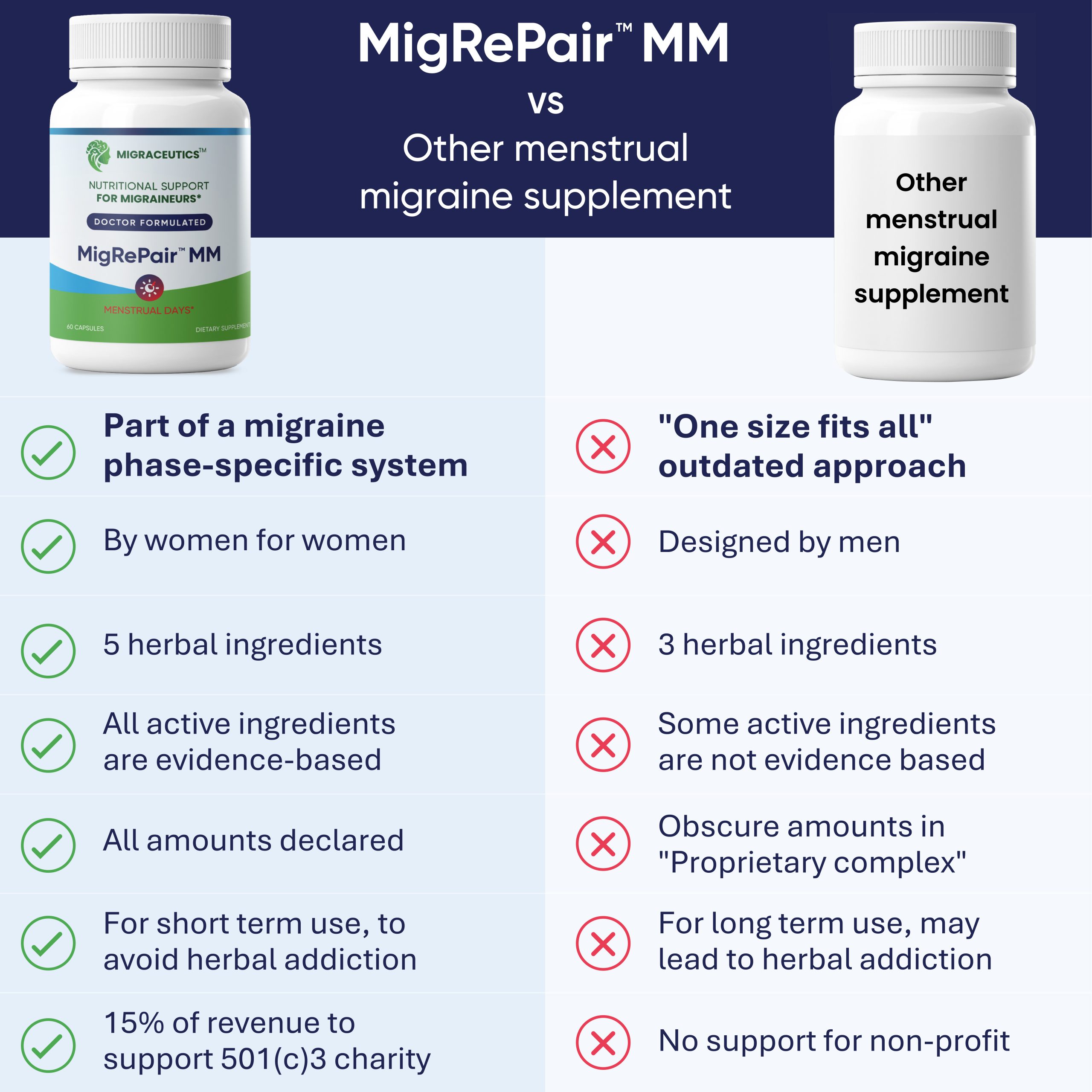 MigRePair MM | Doctor Formulated Herbal Migraine Supplement for Women – Menstrual Migraine Relief